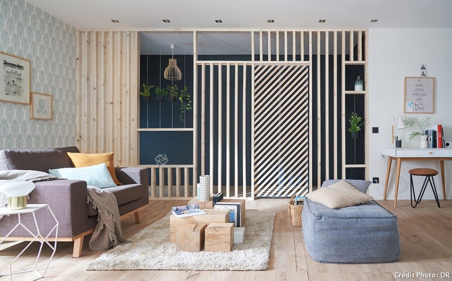 Vous souhaitez intégrer des tasseaux de bois dans votre déco ? Alors que leur fonction première était de cloisonner deux espaces, les tasseaux de bois sont aujourd’hui devenus un véritable atout de décoration. En effet, on les retrouve dans nos intérieurs en guise d’élément de séparation, de déco murale ou encore de tête de lit. De plus, les tasseaux de bois sont tout aussi élégants que pratiques. Leur taille, leur forme ou même leur couleur peuvent varier selon le style que vous souhaitez leur donner. Alors si vous aussi cette tendance vous a séduit(e), découvrez 7 façons différentes d’intégrer des tasseaux de bois dans votre intérieur. Une déco originale et personnalisée L'ASTUCE N°1 En guise de cloisonnement dans une pièce de vie